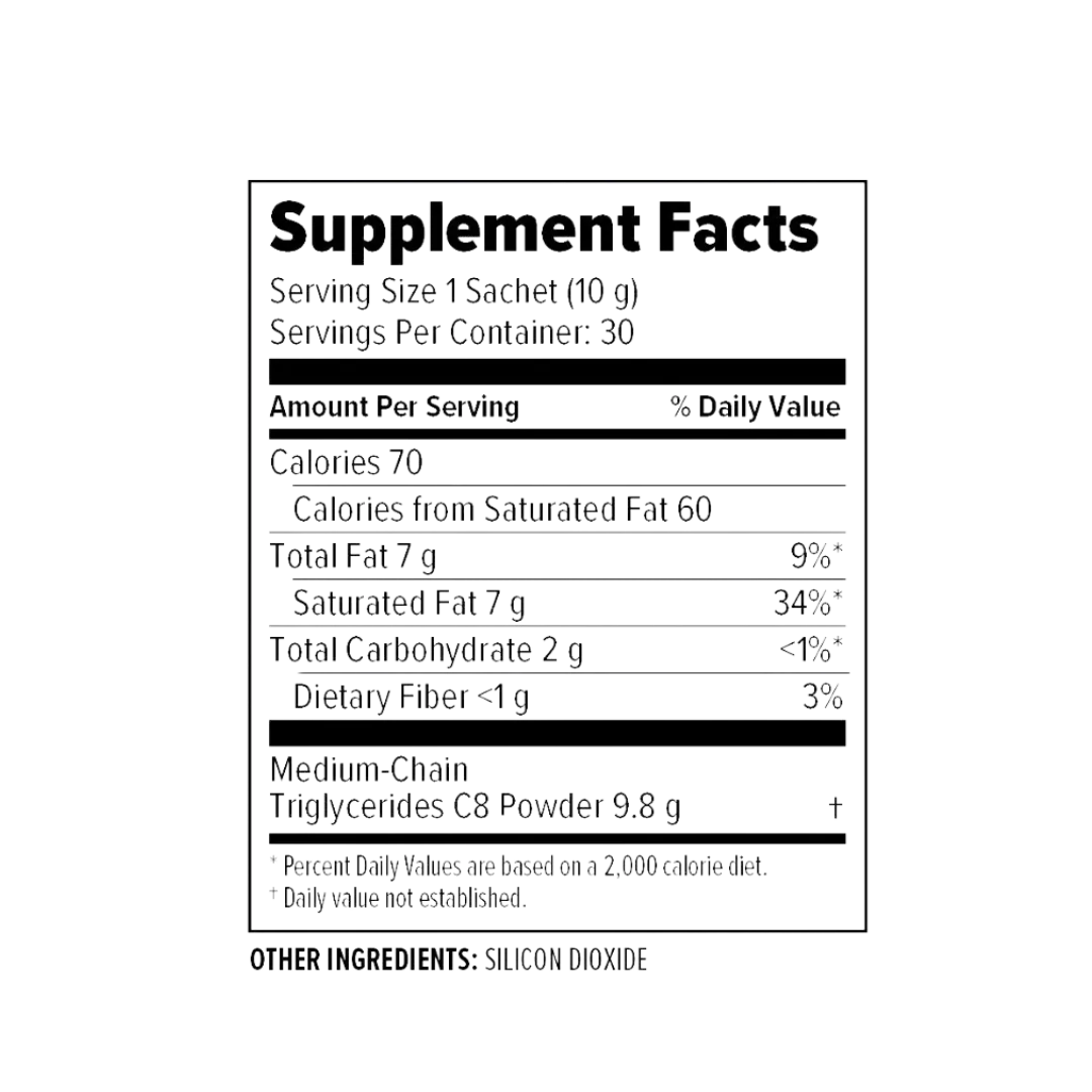 Accelerated Ketone Production: XO8’s premium C8 MCT oil rapidly converts to ketones in the liver, giving your body an immediate energy boost and extending time spent in ketosis.